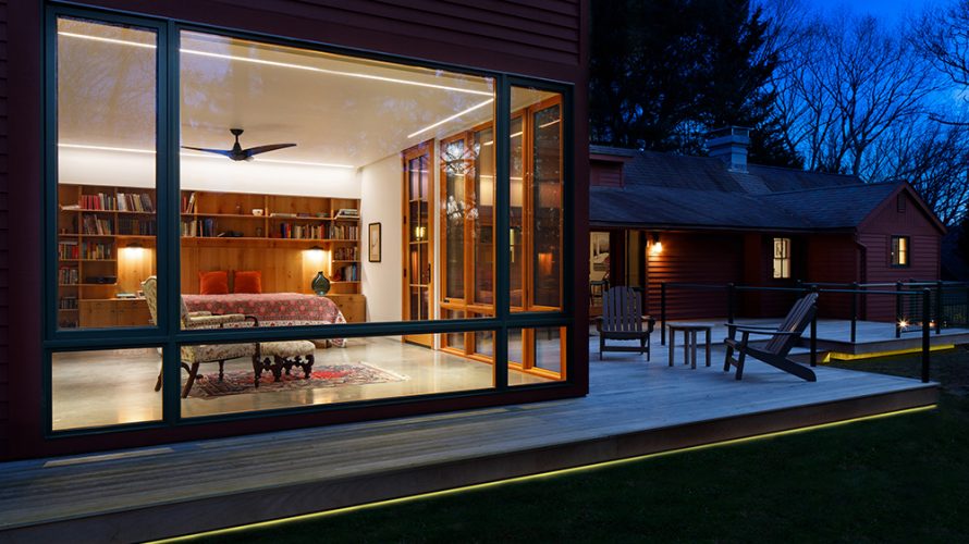 Nestled into the woods of Lyme, the couple desired a primary suite on the first floor, with a good relation to the outdoors. Chris Arelt of Nautilus Architects designed the space to be … modern but not too tight. We converted the existing garage space into the reimagined space, and it works.