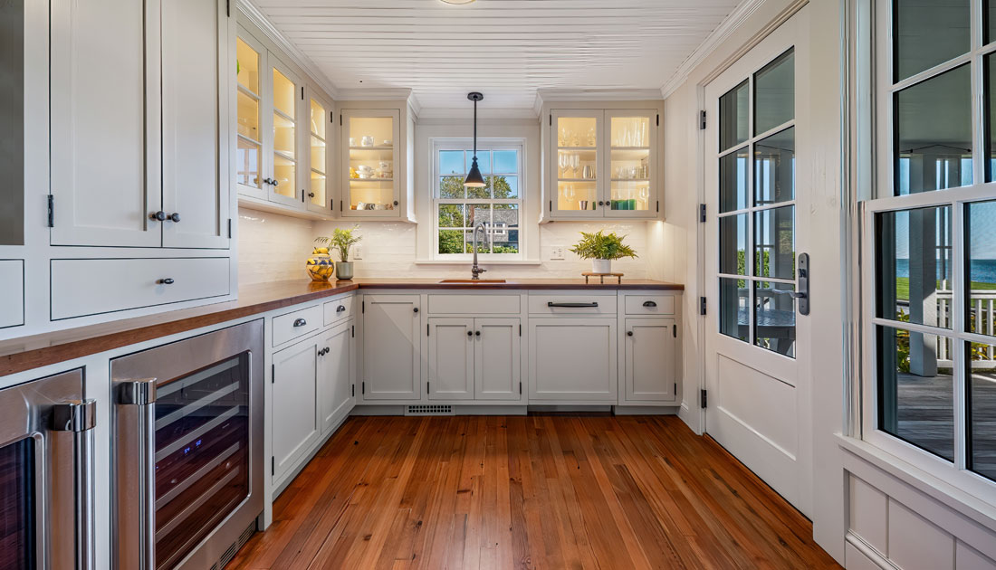 This spectacularly located cottage was originally built for summer use only. The new owners wished to transform it into a beautiful year-round residence. To accomplish this the house was raised high enough off the ground to allow for the construction of a proper foundation and basement and then set back down on top.